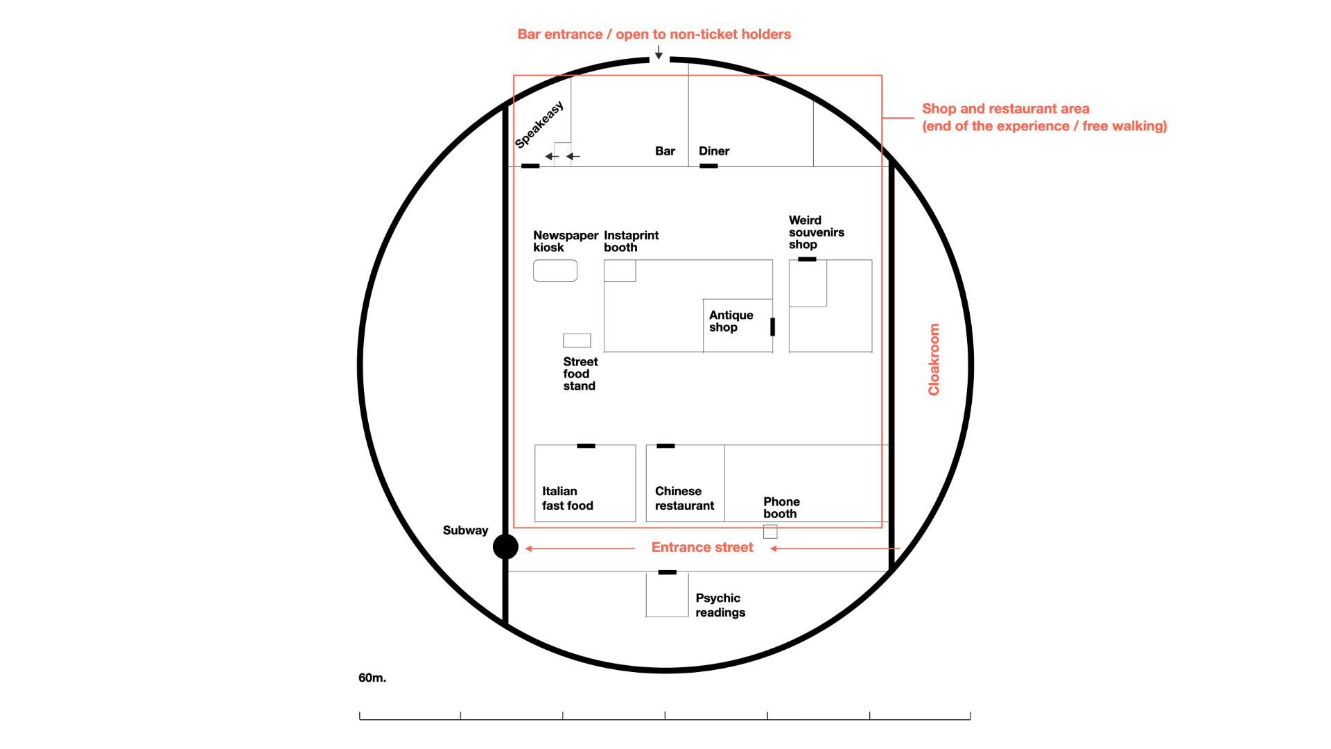Eat a meal at an Asian restaurant table prepared by a chef watching you from the corner of his eye, swallow a hotdog or pizza at the corner of the street on a shop run by a creepy man: after the VR experience, the user has the opportunity to continue his immersion in the streets of the city while remaining immersed in the universe. The space also includes gift shops, boutiques and booths where spectators can buy all kinds of exclusive objects and share their experiences on social networks.
